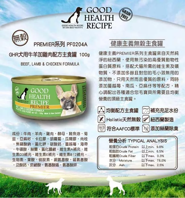 商品推薦:【GHR健康主義】犬用無穀 牛羊加雞肉配方主食罐 犬罐 100g x 48入