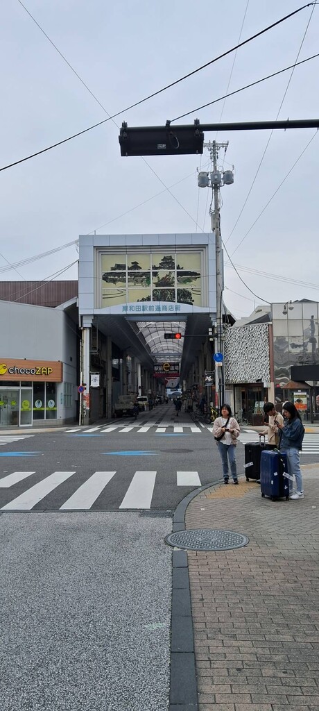 後來告別了小鎮我們往民宿前進,到了車站我們拉著三個大行李箱又走了10分鐘,才在一個商店街的小巷子裡找到我們這六天要住的地方,進去後有點失望,跟心中所預想的差距有點大,第一個是地點,周圍就是居酒屋一條街,喝酒的酒客,陪酒的小姐,充斥在這條街道上,我想著如果每天很晚回來,走過燈紅酒綠才能回到家的刺激,隔音效果也沒很好,我還聽得到旁邊居酒屋小姐的唱歌聲,但塌塌米上有四個床墊,起碼睡覺不會擠,反正我們每天一早就出門,玩到晚上才回來,這裡只是睡覺跟洗澡的地方,換個角度想就釋懷了。