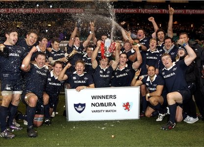 第129屆牛津劍橋大學對抗賽(Varsity Match )12月9日星期四(傳統訂在12月第二個星期二)在英國崔肯翰(Twickenham)主場舉行.穿深藍色球衣牛津大學報了去年一箭之仇(27-31),以21-10擊敗淡藍色球衣劍橋大學.