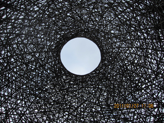 用竹子編成的,模仿「聖母百花大教堂」附近的另一間由科學家設計的圓頂教堂,(應該是