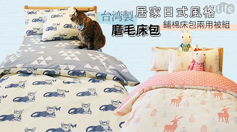 【台灣製居家日式風格】磨毛床包-鋪棉床包組/兩用被組