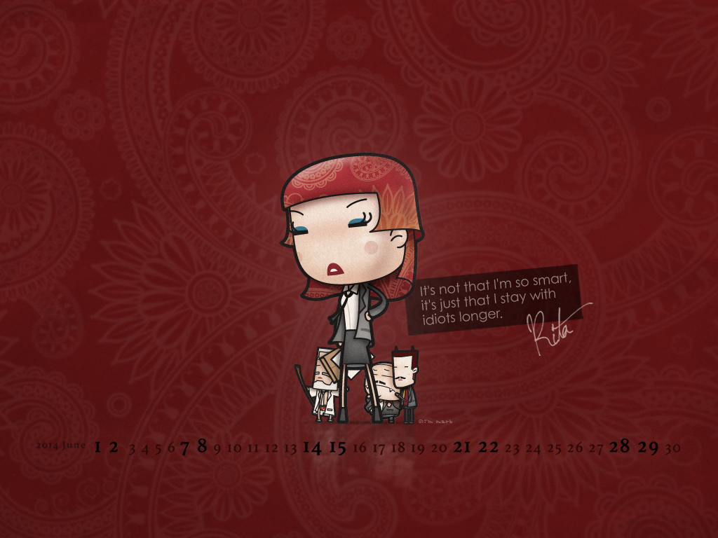 最後,分享給靠友本月的桌布(因故遲了別太靠腰我),這次的主角是大家很喜歡的女主管rita,很多靠友問我,為何她那麼的優秀,卻又甘心留在這個蠢公司替這位蠢老闆工作呢?首先我必須說,我實在不能讓她離開這間公司,因為少了她,我的劇本就很難寫下去。再者,我認為rita能夠那麼優秀,是因為她替身旁那些不用腦的笨蛋解決了太多問題,因此練就了一身好本領。