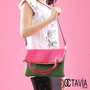【OCTAVIA 8真皮】QUEEN S 韓式百變扁扁撞色包(配綠桃)商品網址: http://ww...