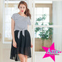 【預購 MOUTH valley】日本空運 透膚百褶細肩帶雪紡紗洋裝+橫條紋T恤上衣二件組(共1色)...