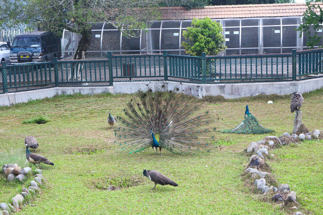 | 孔雀園是位於在,從文武廟通往日月潭纜車的途中。由於時間還早,又剛好路過,就轉進來看看。由於今天來時,並沒有看到任何遊客,一開始還在想是否是荒廢掉了,但等進入園區後,還令我蠻震撼的,因為我還是第一次看到那樣多的孔雀,且每隻都精神飽滿的在散步,跟在動物園裡養的孔雀根本是沒法比。只能說在此生活的孔雀,真的是命太好了。 | |