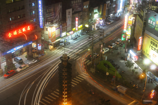 從 11 樓往樓下街景拍攝,雖然距離有點遠,但能拍到我要的車流效果,就已經夠滿足了。 | |