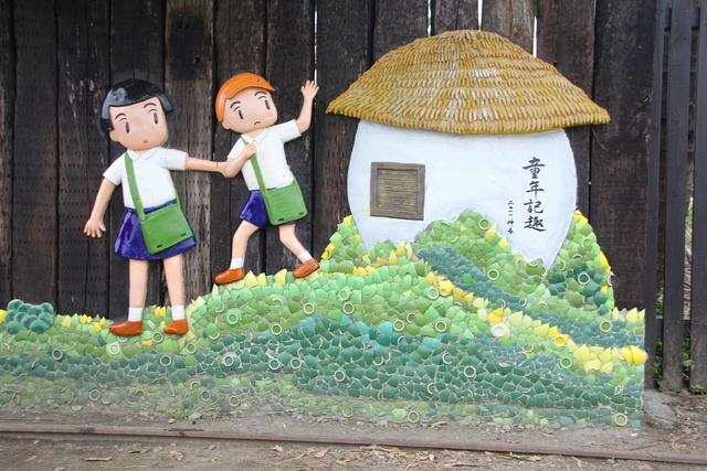好酷喔~~ 把西遊記的故事,以馬賽克的方式,貼黏出一個圍牆藝術。 |
