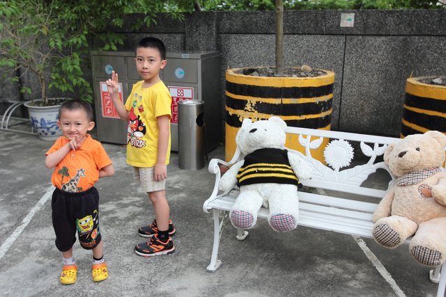園區內所看到的事物都跟蜜蜂顏色有關,黑黃交替。 |