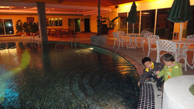 吃完早餐後,趁著空檔,到餐廳外的泳池散散步,順便消化一下。 |