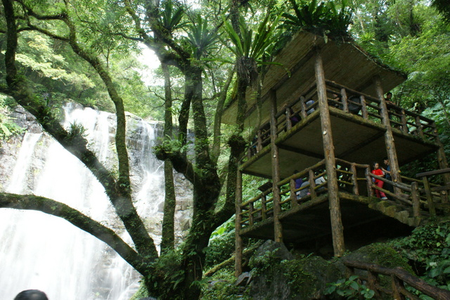 從涼亭看對面的滿月圓瀑布,瀑布壯觀氣勢一覽無遺。 |