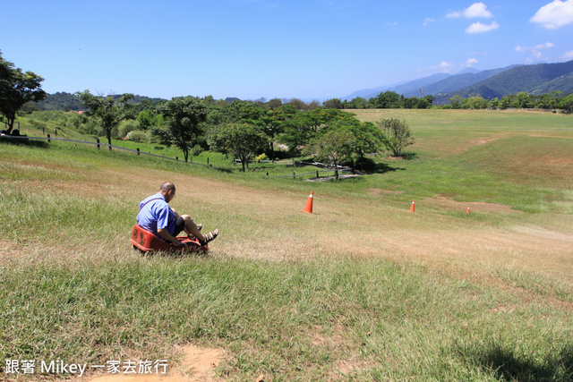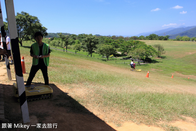 雖然烈日當頭,仍舊不減遊客的興致,大家一窩蜂地在這排隊,耐心等候滑草的機會。 |