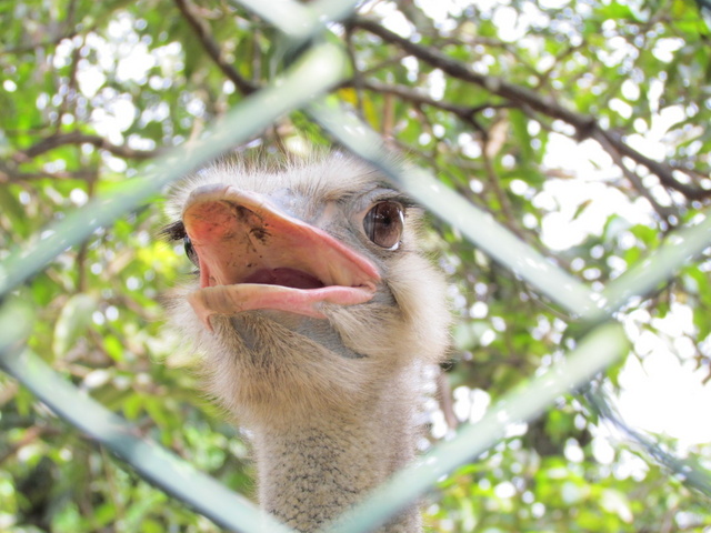 同樣的招術,用在駝鳥上,就破功了!牠完全不屑一顧,不曉得是不是大近視?還是以為我們人類把牠當白痴? |