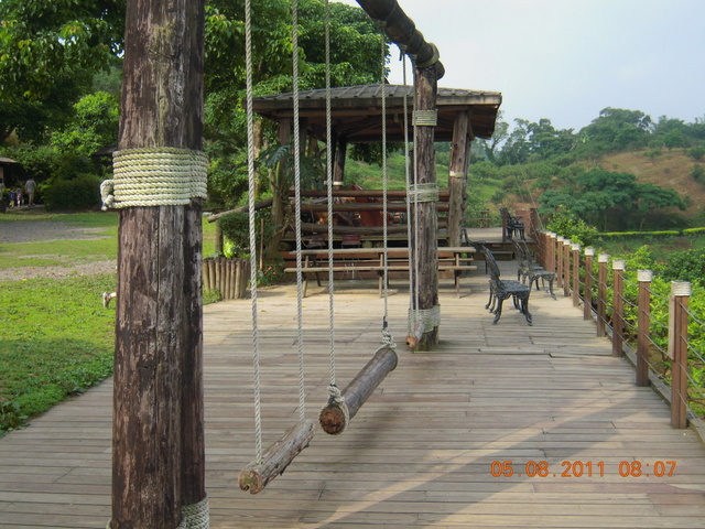 這邊還有木頭作的鞦韆,遊客可以坐在上面,飽覽整個蘭陽平原的風光。 |