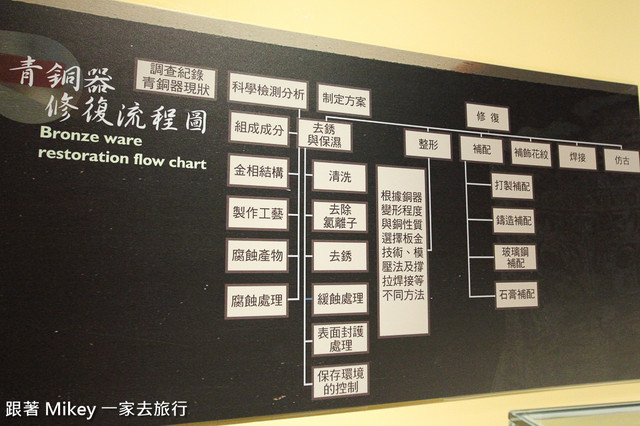 即使保存功夫再好,東西也是有壞掉的一天,更何況這些曾經封存在地底下的古物。為了能讓這些古物能以原始風貌再一次呈現在世人眼前,修復師的角色及功力,顯得格外重要! 牆上的修復 SOP,光看就覺得一個頭兩個大,費時又費力,不禁讓我打從心中感謝這些默默在背後付出的修復師傅們,沒有他們,我就無緣一睹這些古物的風采。 |