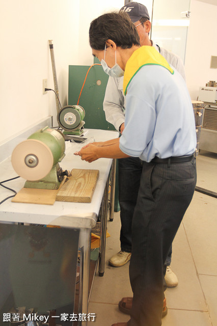 左邊這位大哥, 正在作拋光, 把半成品雕琢得更有光澤。 |