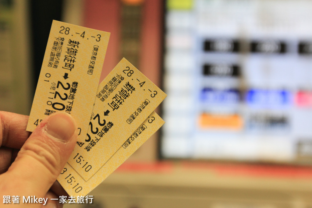 首先, 用自動售票機買好車票, 大人 : 220日圓, 小孩半價。 |