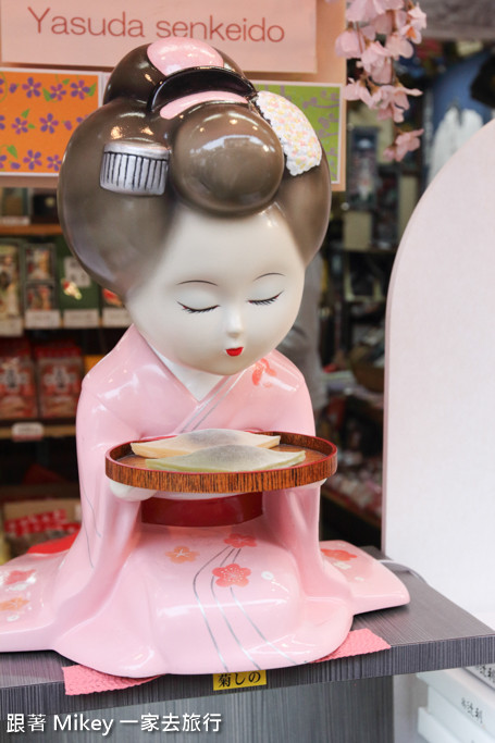 上圖這個一直搖頭晃腦的藝妓, 雙手捧著正是京都有名的甜點 : 『 生八橋 』。