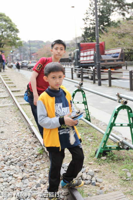 一對穿著和服的年輕情侶在鐵軌上漫步, 沒想到竟然發現我在偷拍他們, 冏~ ^_^” |