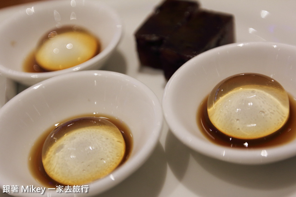 這一顆顆彷彿像透明的水晶球, 是日式甜點 : 『 水信玄餅 』, 可以灑上黃豆粉一起吃, 不過我覺得單吃就很好吃了, 入口即化, 鴻鴻還一連吃了 6 顆, 都不留給別人吃! >_< 【 註 】 水信玄餅,又稱為雨滴蛋糕,使用日本赤石山脈的水所製成,只有夏季販售。有著天然甜味,看起來像一大塊無色的果凍, 日本傳統吃法是灑黃豆粉再淋上黑糖糖漿。 |