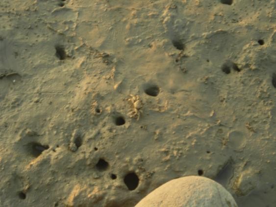 應該不是招潮蟹,我在淡水看過招潮蟹,有一隻螯特大呢。
