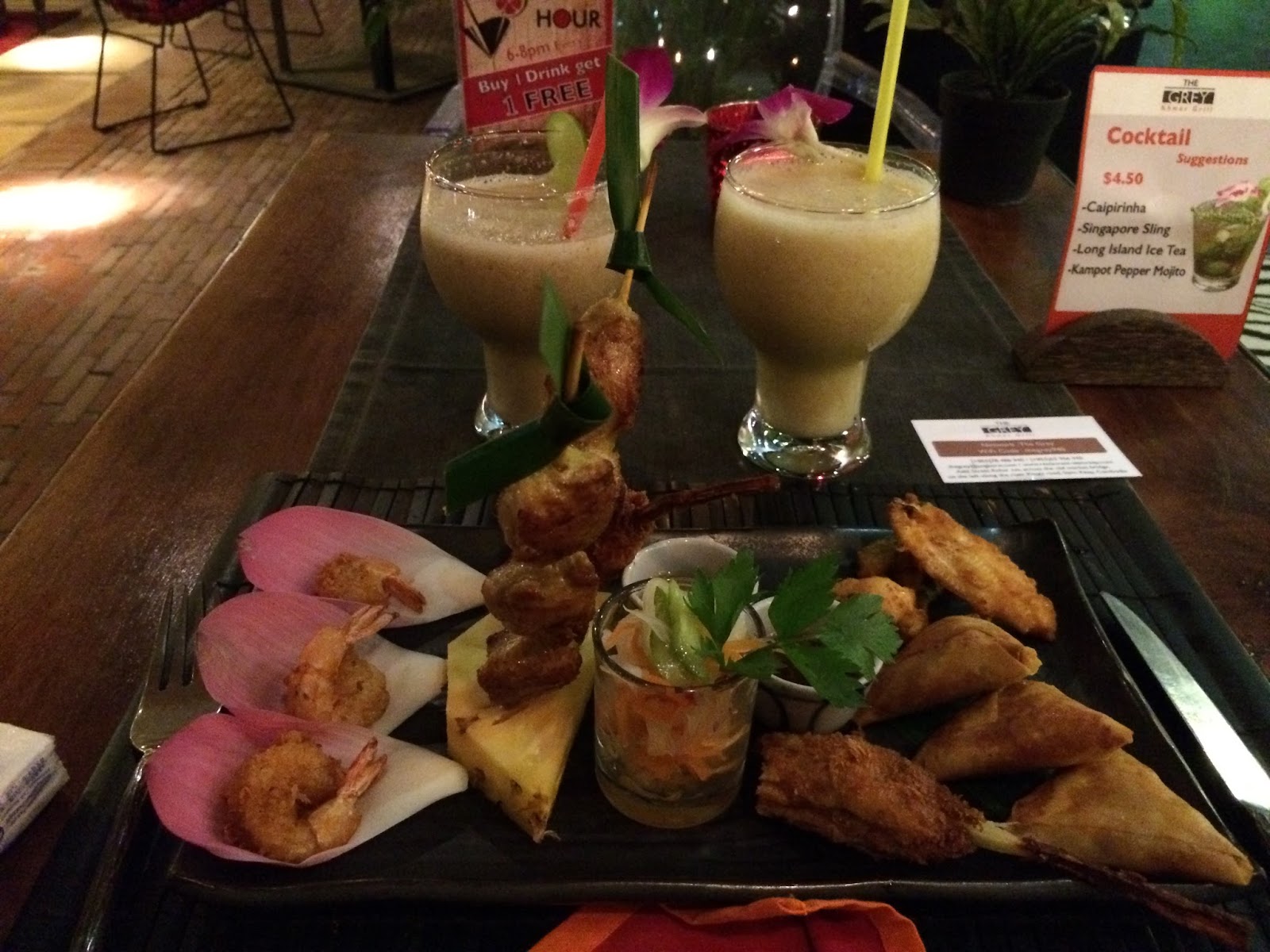 食物四五元美金一份,不算貴。我們邊吃邊聊,他說他不是暹粒人,在一個我聽他說了也不知是哪裡的地方出生成長,後來才到暹粒討生活。我又問他教育程度,他說他中學畢業。