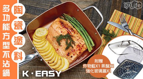 K·EASY陶瓷塗料多功能方型不沾鍋+配件組"詳細介紹如下~你可以參考看看唷