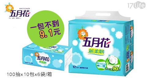 平均每箱最低只要549元起(含運)即可享有【五月花】新柔韌抽取式衛生紙2015升級版1箱/2箱(100抽x10包x6袋/箱)?