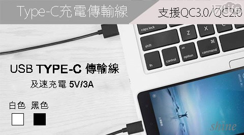 只要148元(含運)即可享有【SHINE】原價390元Type-C充電傳輸線(支援QC3.0/QC2.0)1入,顏色:黑色/白色?
