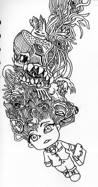 從前有個愛好幻想的小女孩,憑著幻想,她每天也快樂地為眼前的事物點上生命,她希望以後也可以這樣,世界多美好。有一天,媽媽告訴她終於可以上學,她興奮不已,因為她知道知識可以擴展她的想像空間,越具智慧,便越可想出更多更多新奇的事物。然而,當走進課室時,她便知道她是錯的,因為她看到每個小朋友也擁有同樣的椅桌,手上必拿著沒有變化的同形狀同封面同顏色同書目同內容同作者同出版社的兒童創意得意有趣開心啟發圖書。她很失望,為何大家用的吃的讀的也是一模一樣?在家時,她和爸爸媽媽爺爺哥哥用的筷子書桌,甚至讀的書也不同。心想,哥哥用的是Parka鋼筆,讀的是《生命中不能承受的輕》的中譯香港版本。她用的是大口仔鉛筆,讀的是《老鼠愛大米》系列第三章中譯台灣版本;媽媽每天告訴她的故事必和鄰家的爸爸告訴他兒子的故事不同。為何大家要一樣?要在同一個相同點開始?她的想像不同於別人的想像,然而相同的事物讓大家的想像距離拉近,變成庸俗,變成公式,變成可溝通的語言,變成社會,變成通識教育。老師要大家作文,寫同一個題目:我的志願。她寫不出來,因為她已想像不到有一個可以和別人不同的志願,同時她亦意識到她已陷於只追求與人不同的境況,陷於突出自己的與眾不同的所謂啟發潛能建立自我,而不再是自由自在的自我幻想,不再是為了快樂而為椅桌為鉛筆為布娃娃為電風扇為日曆紙添上生命,成為她的朋友。當時她三歲,同年她的童年被埋葬於大腦與小腦之間的一個軟組織層,一個為幻想而設的純白色軟體思想棺木內。