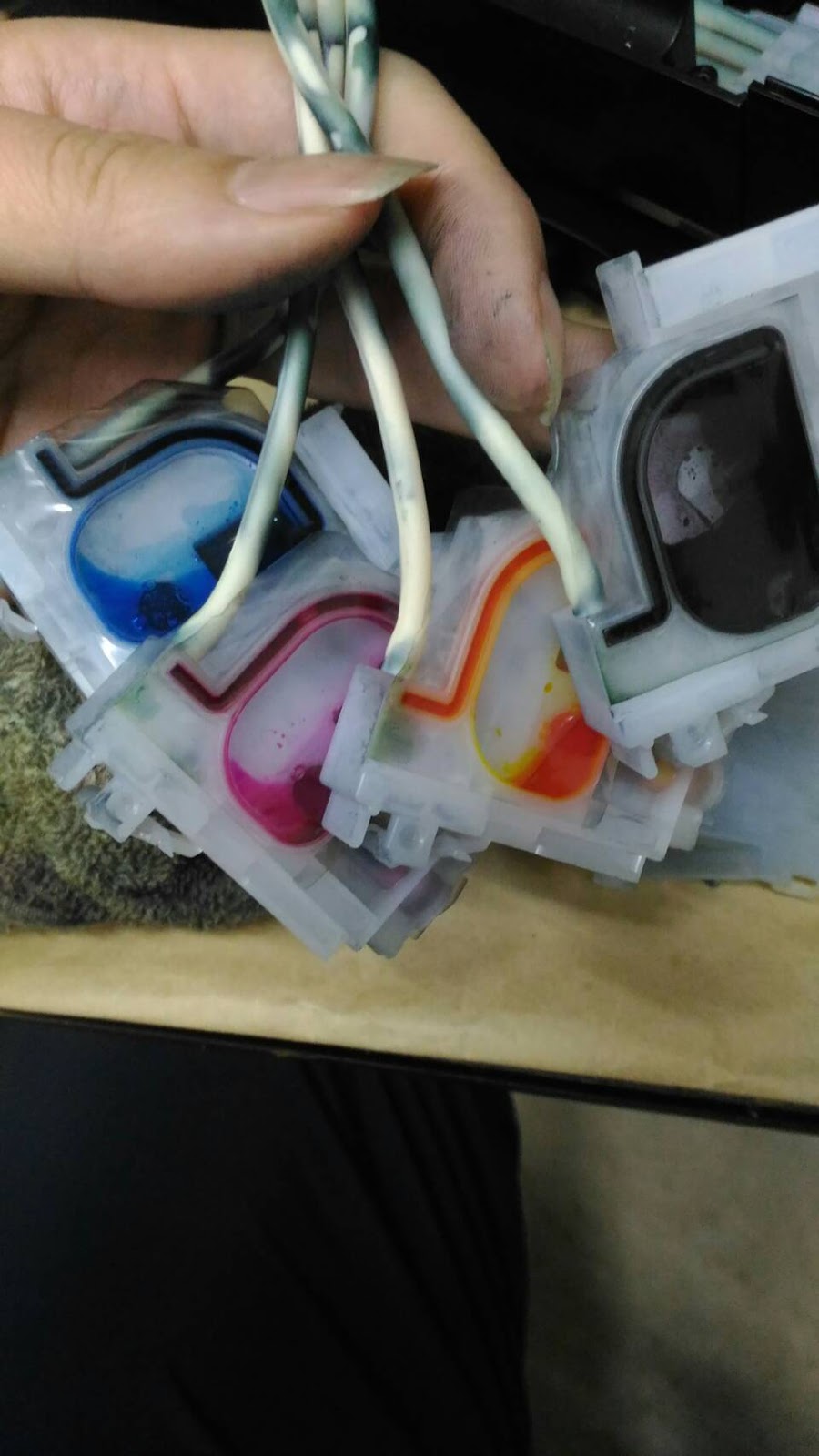 1.全部完成後,噴嘴檢查,機器列印張數才兩千多張!!機器很少印的緣故所以噴頭賭塞,而要印的時候一直洗印字頭造成廢墨已滿的問題!!清理完畢測試列印OK!!
