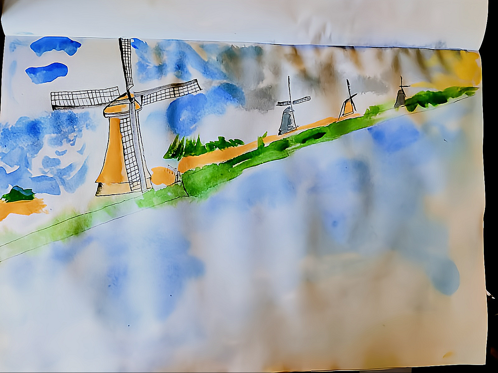 荷蘭的風光 , 一份簡樸、自然風景 ,幾座風車設置在堤岸邊 ,相當不錯的景致 ~
