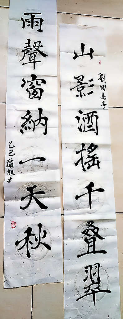 "山影酒搖千疊翠 ,雨聲窗納一天秋"