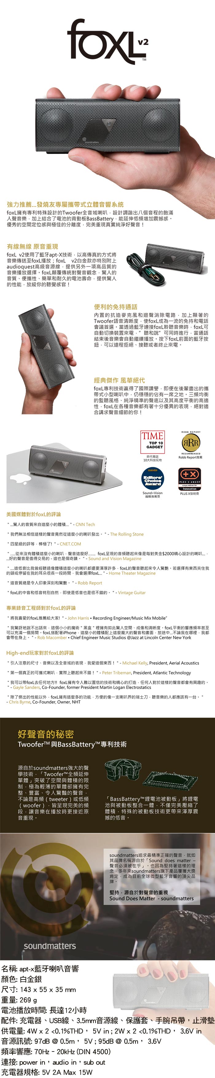 【本季最新款推薦】soundmatters foxL v2 apt-x 可攜式藍牙喇叭音響 白金銀-本季折扣活動