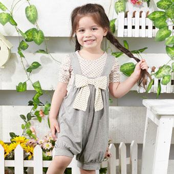 ![]() | 灰色-典雅棉質蝴蝶結吊帶褲 蝴蝶結設計