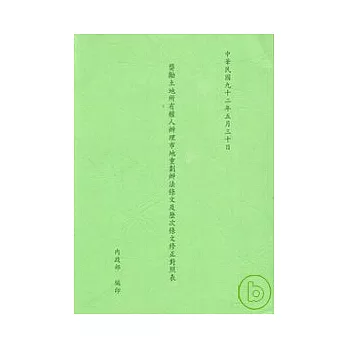 浙江省土地問題與二五減租(1927-1937)(精)![]() | 獎勵土地所有權人辦理市地重劃辦法條文及歷次條文修正對照表![]() | 農業發展條例及相關法規彙編![]() | |||