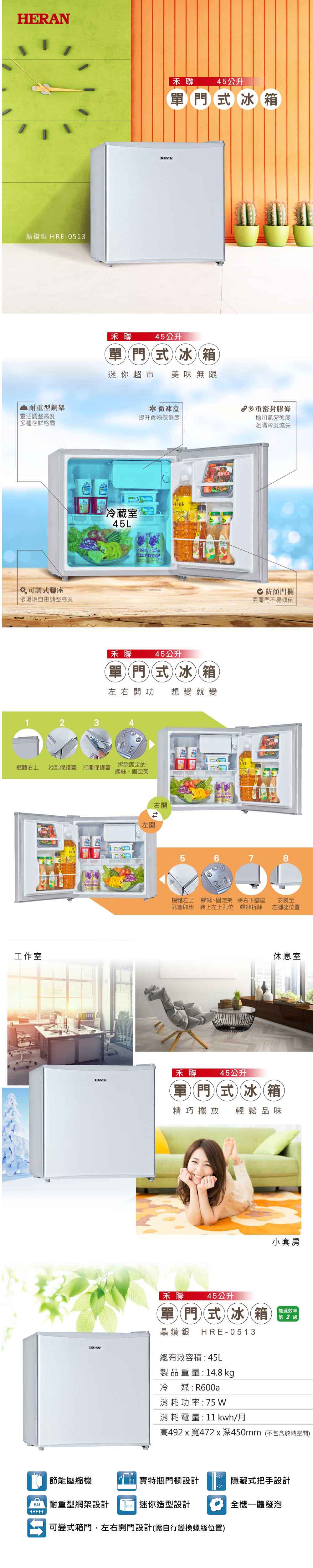 【HERAN禾聯】45公升節能單門小冰箱 HRE-0513 討論,推薦,開箱,CP值,熱賣,團購,便宜,優惠,介紹,排行,精選,特價,周年慶,體驗,限時