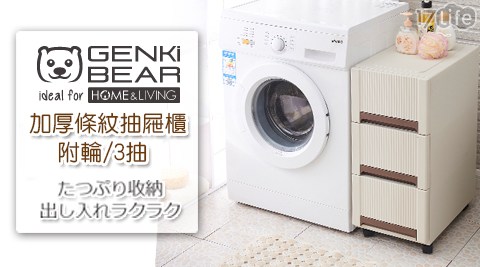 商場百貨! 人氣排行前三的【GENKI BEAR】加厚條紋收納抽屜櫃附輪 3抽 2色可選-好用嗎?