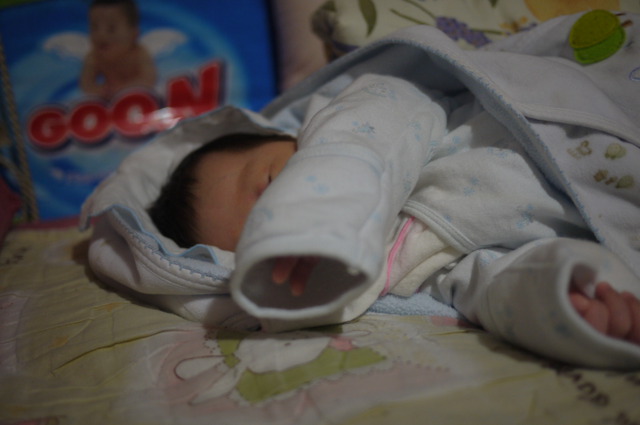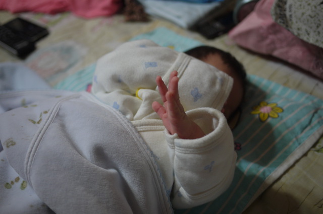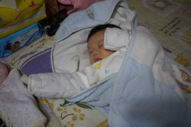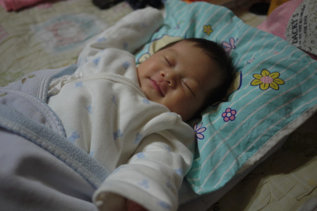 昨晚妹妹超難搞,從下午3點半~半夜1點都不睡,明明就看得出有睡意,但就是睡不沉,後來凌晨1點睡著後,就一覺到天亮6點多,半夜都沒起來"哭餓",妹妹通常睡沉一點可以撐到5小時,這次撐6個小時對我來說算是奇蹟,半夜隱約記得她熱到睡不安穩,閉著眼扭動身體掙扎一直呻吟,後來幫她將包巾移除讓她側睡,她就直接睡到天亮,真希望她每天晚上都可以這樣,但此時此刻看著她在我後方睡得香甜,相對晚上很可能就難睡深沉,我得趕快真著他補眠,不然晚上我就"栽西"啊!!