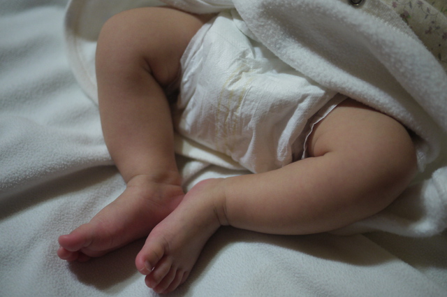 腿短短,兩腿間卡著尿布,側睡腳也懸在半空~