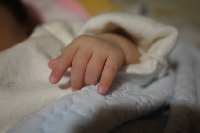 妹妹睡覺姿勢超多變的,也很愛用手摀臉睡覺~(大概是燈光太刺眼吧!?)