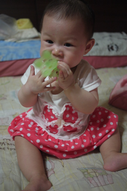 他不愛吃奶嘴耶!!不過倒是很愛拿來亂咬又亂丟掉