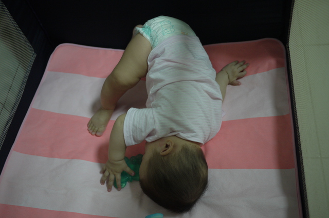 沛喜歡趴著喝奶,每次親餵到一個階段(可能是半飽,可能是8分飽?),就會翻滾兩圈到距離我約