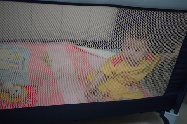 沛還蠻怕獨自被留在房內的遊戲床內,除非~我們還在她能見範圍之內!!