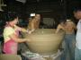開始疊窯了,這是第一輛車台,已經疊一半~霞 將一個七斗陶缸放在車台上調整好位置~ 調好位置~墊耐火磚...