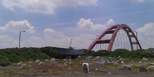 無聊的自己一個人騎著車到海邊看海、吹吹海風~~~ 在路上碰上唯一有趣的事是遇到一個騎車的背包客,從我身旁呼嘯而過的時候大喊著:「YA~~~」高聲唱著歌~~~ 哈哈~好自在、好自得其樂的人吶~~~