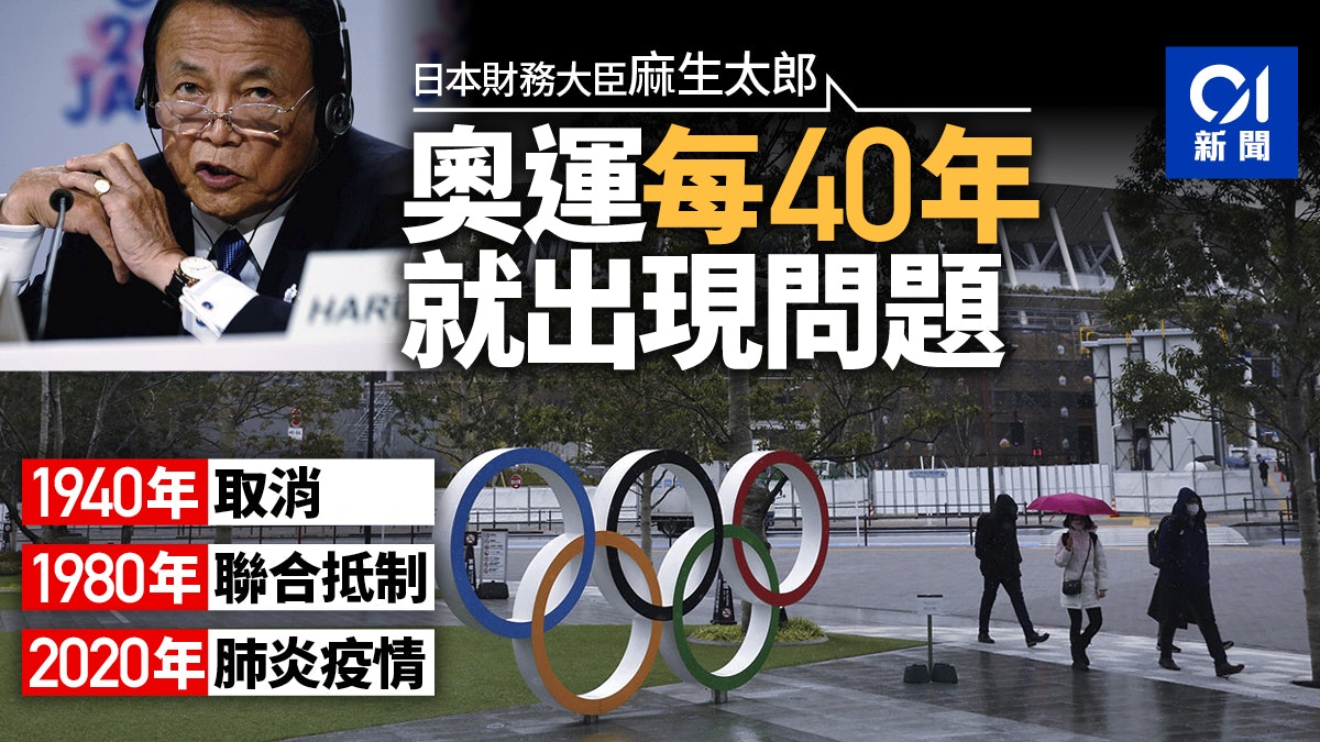 麻生太郎在參議院財政金融委員會會議上表示,奧運「每40年就出現問題」,認為這是事實。1940年夏季和冬季奧運會原定分別由日本東京和札幌舉辦,但因為戰爭取消;1980年莫斯科奧運會則因為抗議蘇聯入侵阿富汗遭到美國和日本等國聯合抵制。