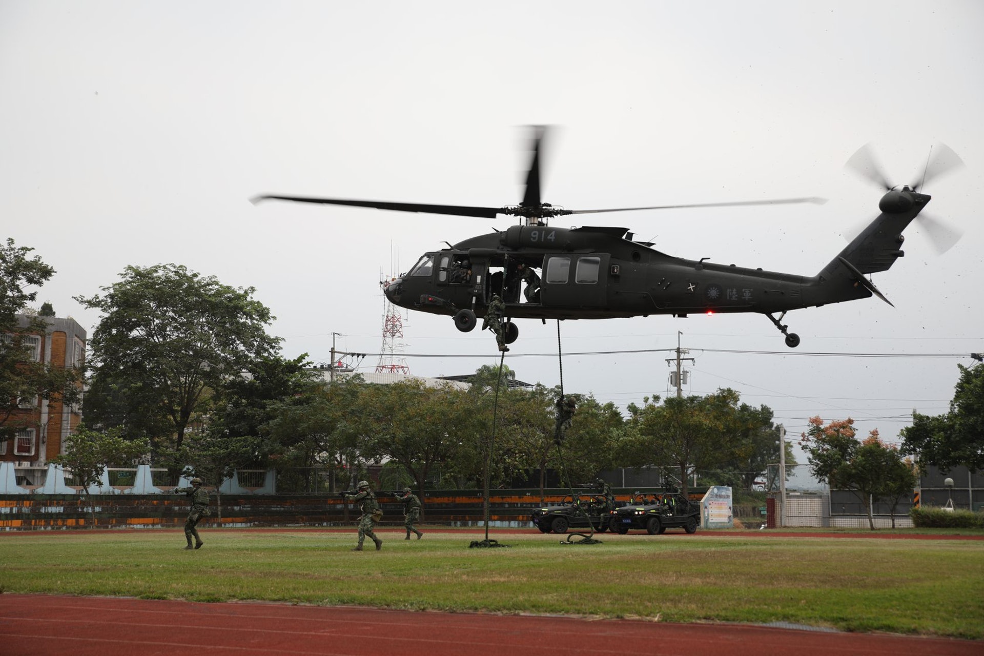 台灣陸軍空降特戰部隊的UH-60M通用直升機,將會在此次操演期間,降落於多處台灣市區。(台灣國防部提供)