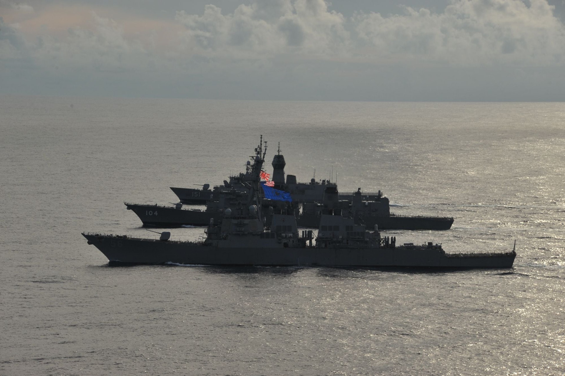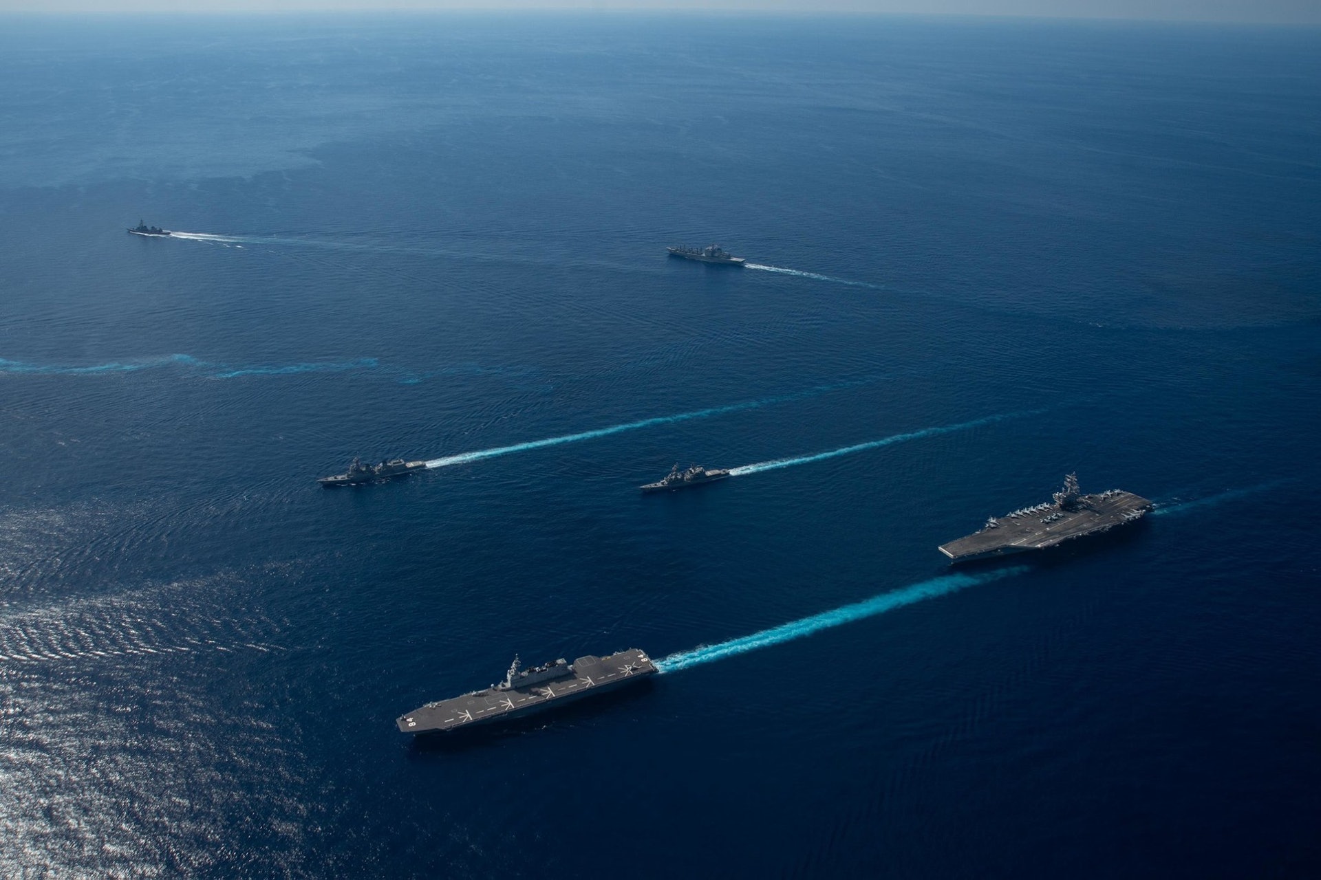 美國印太司令部,才剛剛公布與日本聯合舉行的「利劍」演習影像,美、日與加拿大軍艦集結。(U.S.Indo-PacCom)